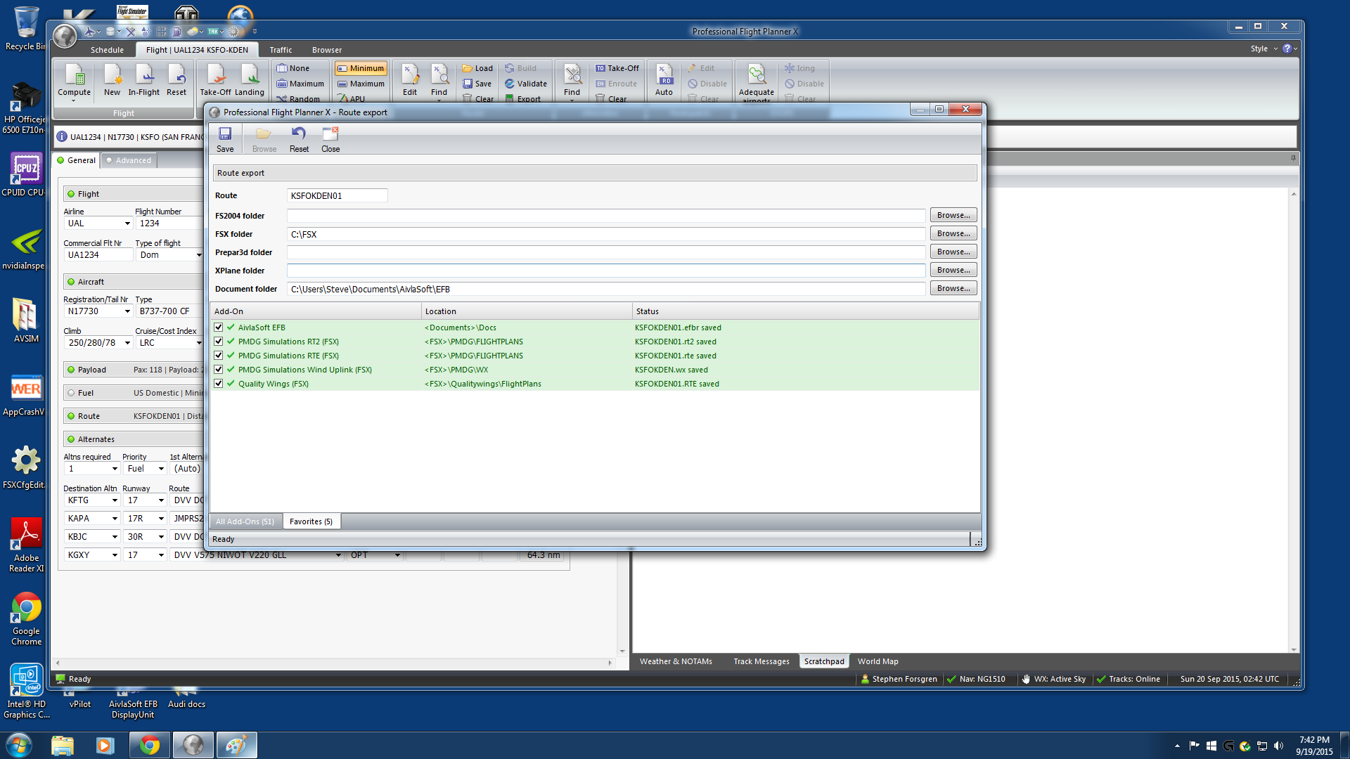 Now I have a ready planned route wich I paste into EFB. I add my expected altitude and save the route so that the route is available for import in AS2012 and NGX, MD-11 or J41, wich are the aircrafts I currently fly. EFB is flexible. You can paste a route in or define your own. Expensive, but it's the one thing that made IFR flying all make sense to me. Yep, I use it on every flight. I fly online only so I love the frequency changing function, the moving map for situational awareness and the ability to show online traffic in ground view.